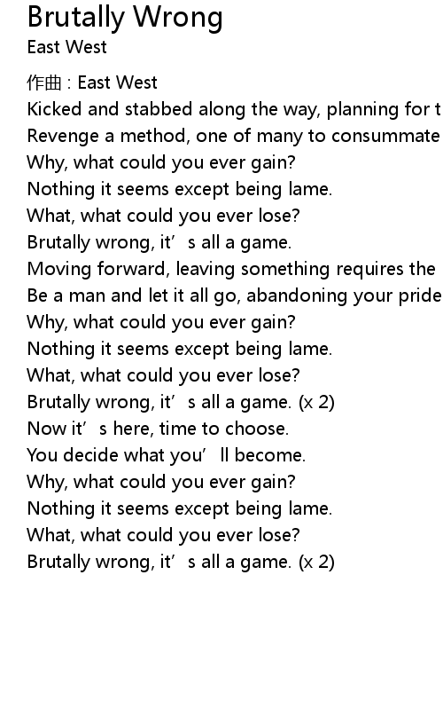 | Brutally wrong, it’s all a game. (x 2) |