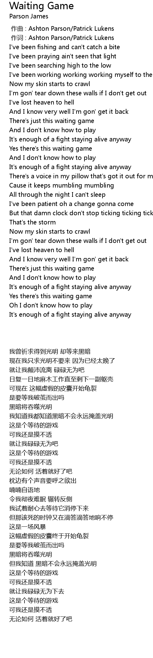 | [01:24.000] | Yes there' s this waiting game |