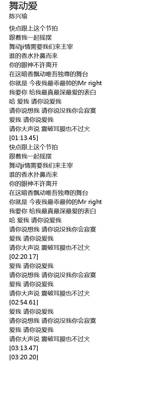 | [03:06.71] | 请你大声说 震破耳膜也不过火 |