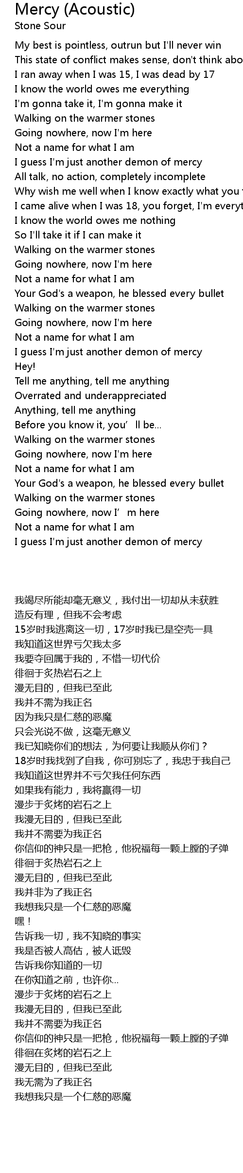 | [00:51.861] | I guess I' m just another demon of mercy |