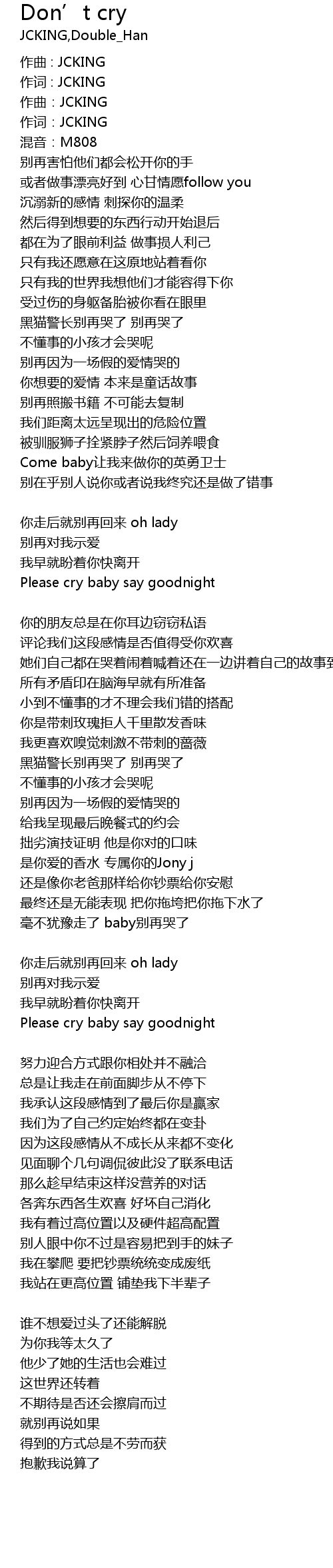 | [02:22] | Please cry baby say goodnight |