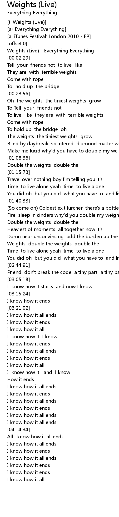 [ti:Weights (Live)] |