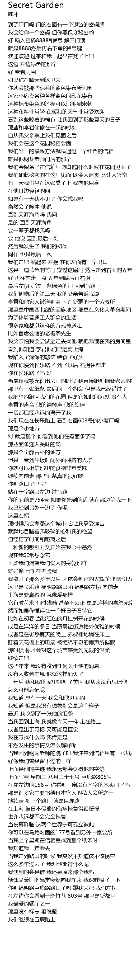 | [01:23] | 我们会留条子在信箱里 就知道什么时候在花园见面了 |