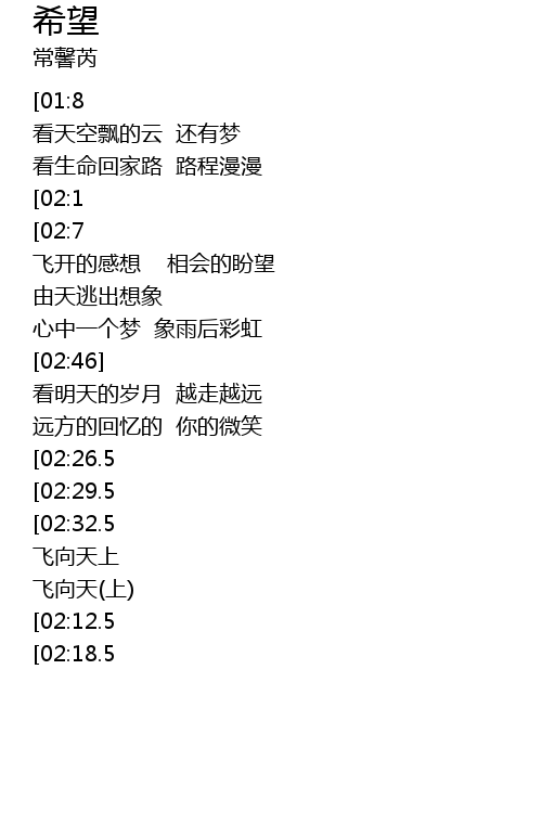 | [02:35.5] | 飞向天(上) |