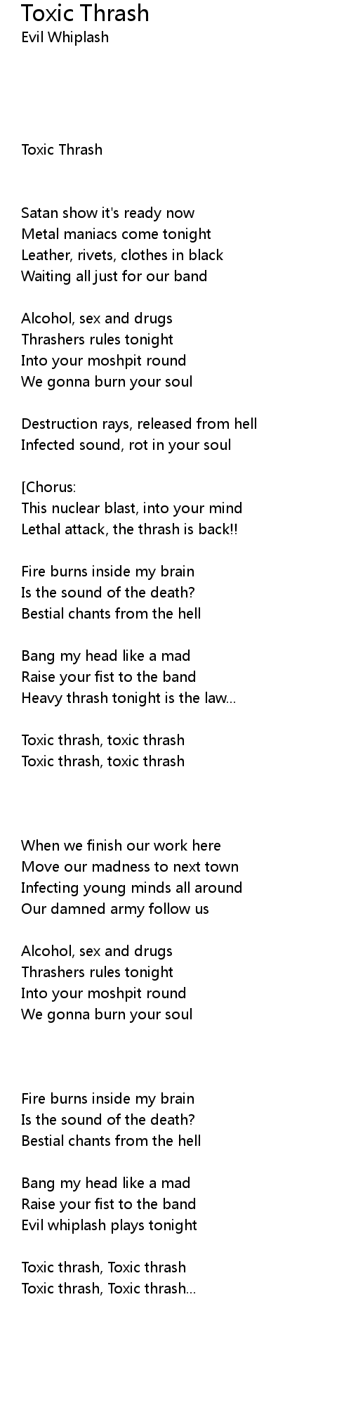 | [05:38.89] | Toxic thrash, Toxic thrash |