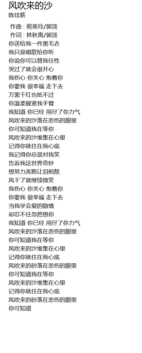 | [03:22.130] | 风吹来的沙堆集在心里 |