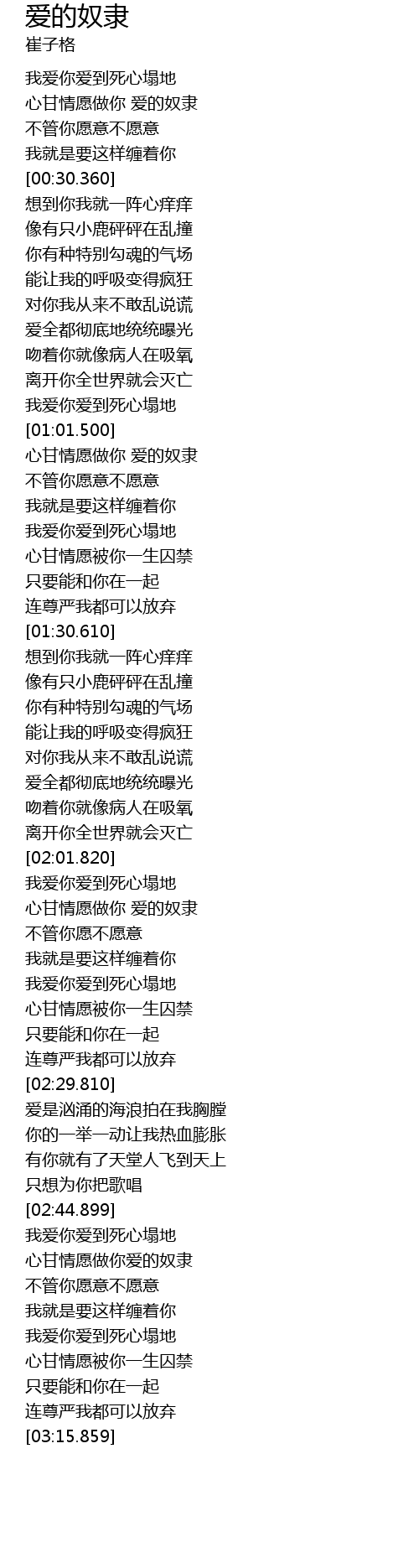 | [02:50.640] | 心甘情愿做你爱的奴隶 |