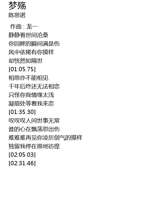 | [00:00.00] | 作曲 : 龙一 |
