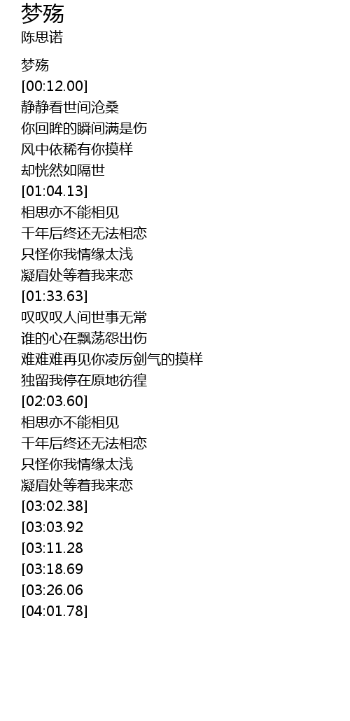 | [00:00.00] | 梦殇 |