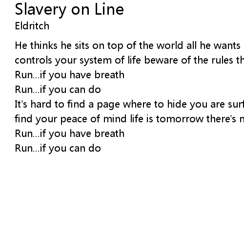 | He thinks he sits on top of the world all he wants is a piece of your soul now controls your system of life beware of the rules that'll cut like a knife | |