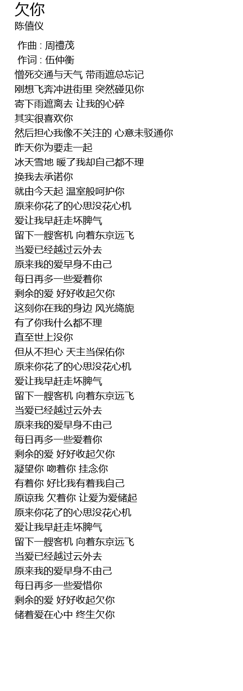 | [03:12.59] | 储着爱在心中 终生欠你 |