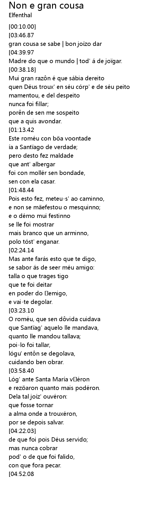 | [04:34.11][03:46.87][03:11.56][02:12.61][01:37.36][01:02.00][00:26.61] | Non é gran cousa se sabe | bon joízo dar |