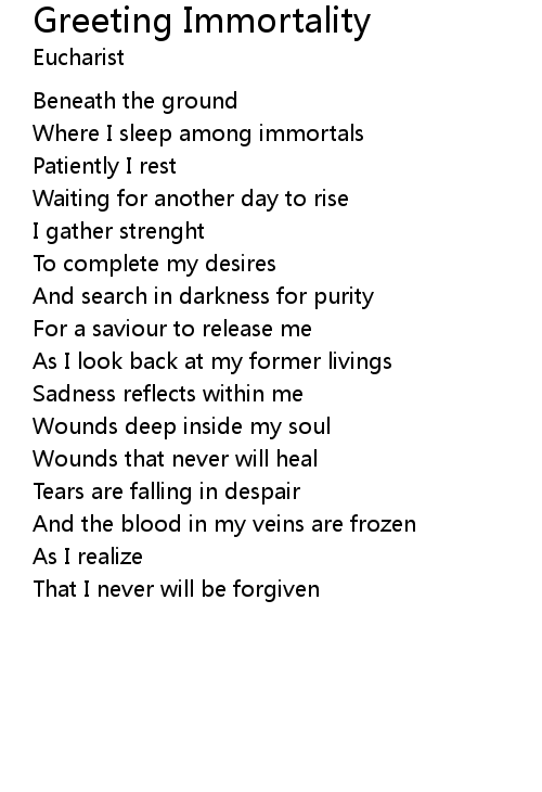| Song | Greeting Immortality |