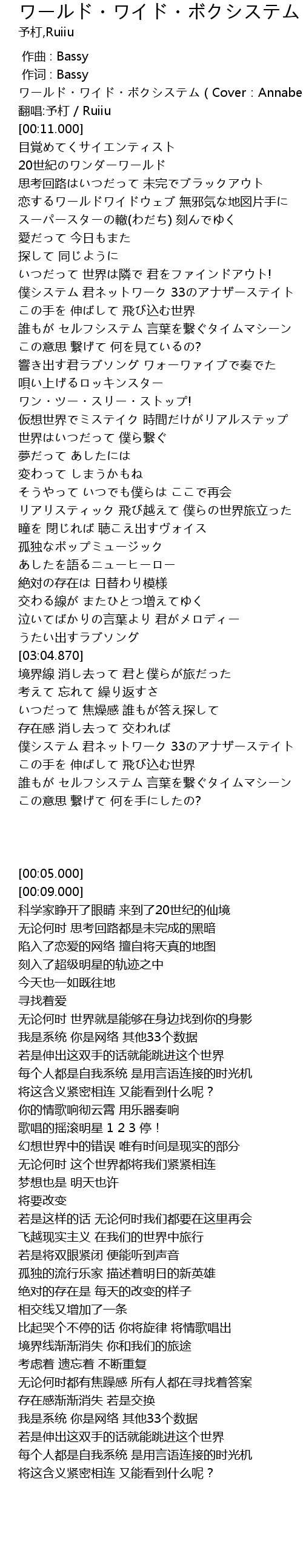 | [00:05.000] | ワールド・ワイド・ボクシステム(Cover:Annabel) |