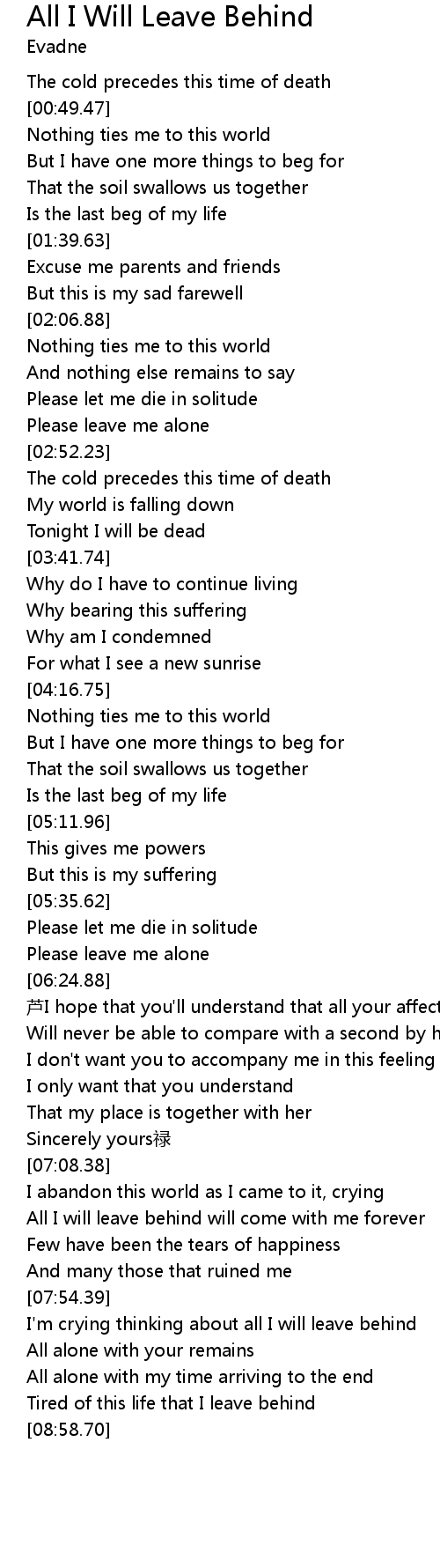 | [07:54.49] | I'm crying thinking about all I will leave behind |