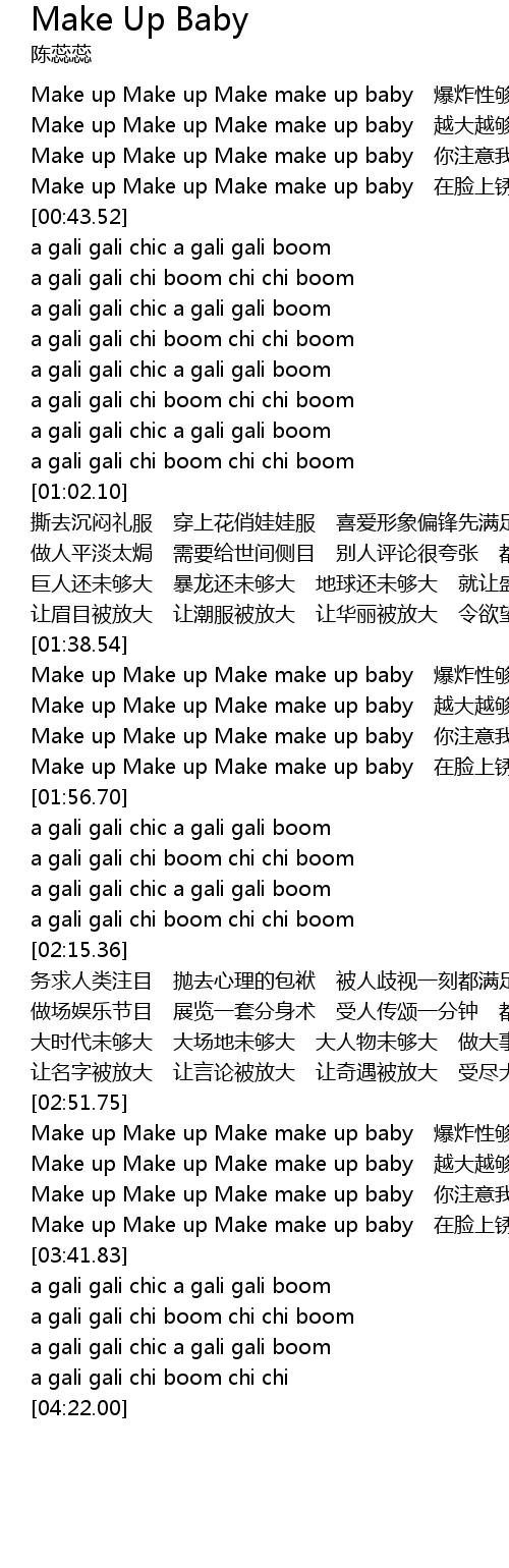 | [01:43.50] | Make up Make up Make make up baby yuè dà yuè gòu kuā |