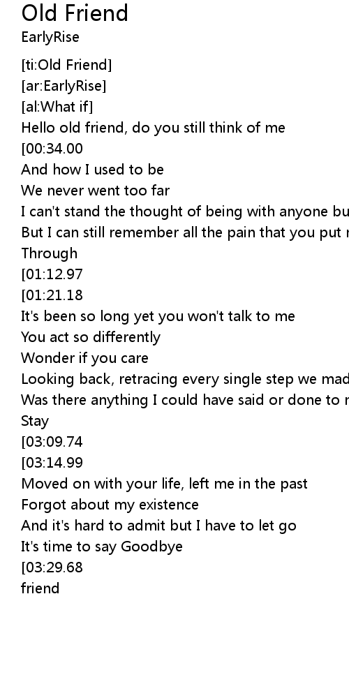 | [03:27.63][03:29.68][03:32.79][03:35.40][03:42.32][03:45.68][03:49.15] | Goodbye my friend |