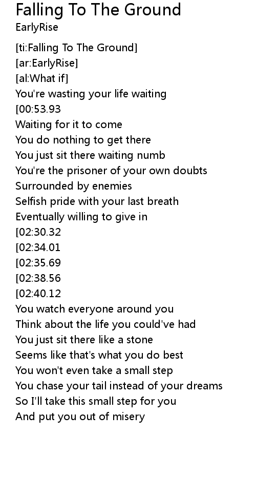 | [01:22.39][02:30.32] | You're falling to the ground |