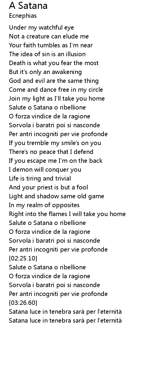 | [03:44.26] | Satana luce in tenebra sara per l' eternita |