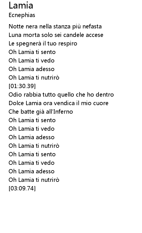 | [01:11.77] | Oh Lamia ti nutrirò |