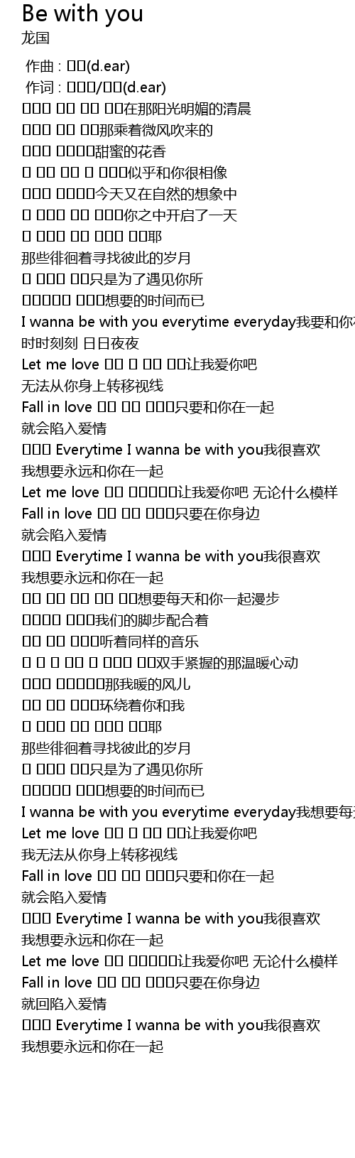 | [02:03.63] | I wanna be with you everytime everyday我想要每天和你在一起 |