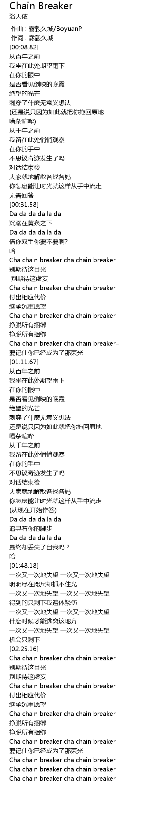 | [02:59.14] | Cha chain breaker cha chain breaker |