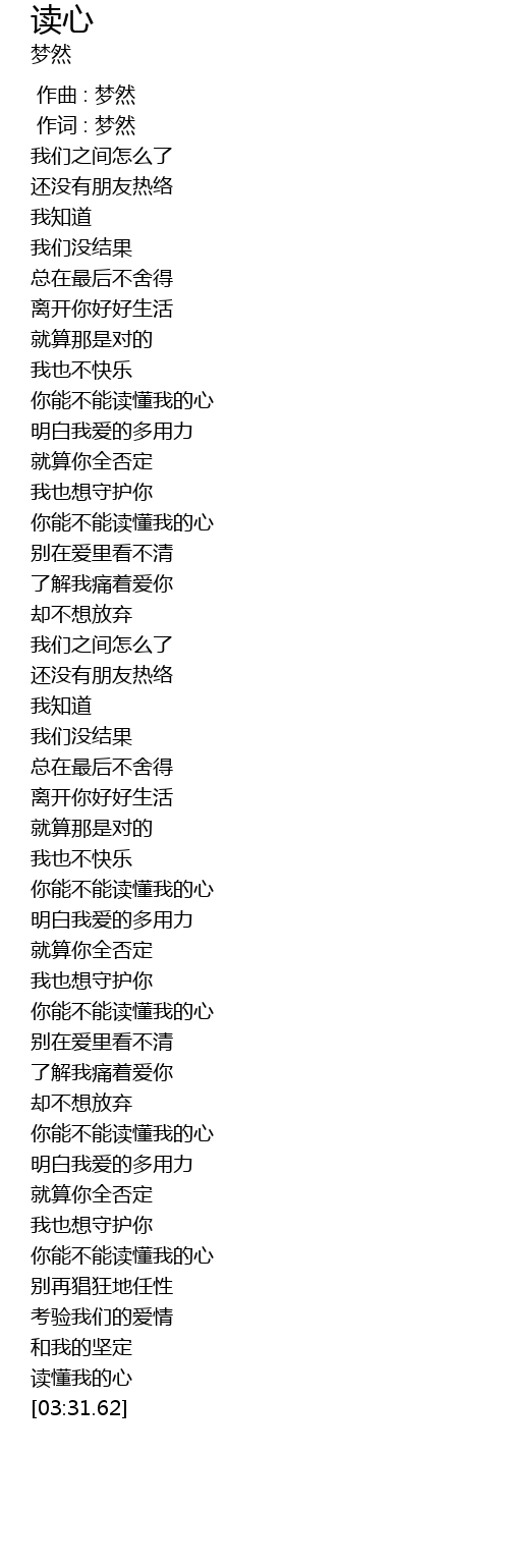 | [03:24.63] | 读懂我的心 |