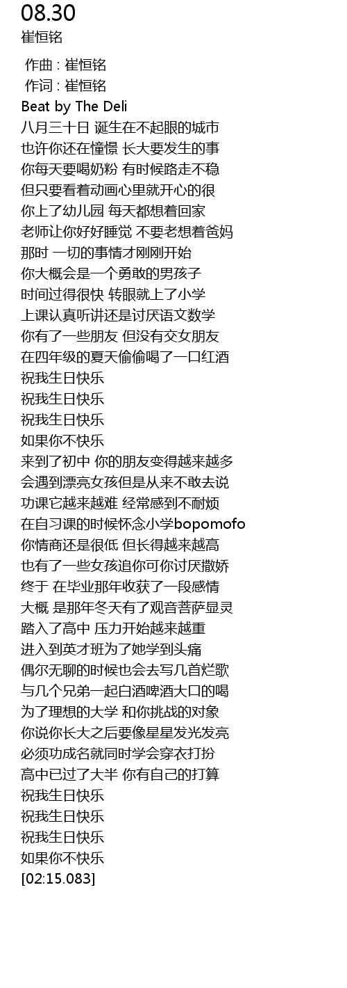 | [00:13.162] | 八月三十日 诞生在不起眼的城市 |