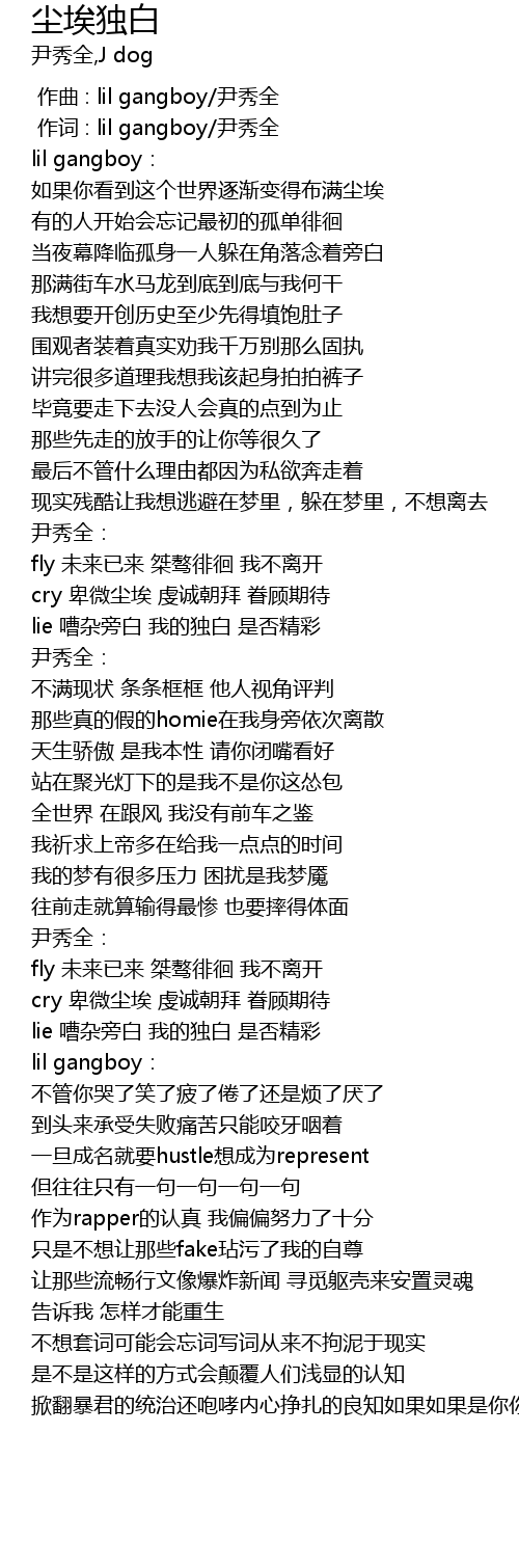 | [00:01.000] | 作词 : lil gangboy/尹秀全 |