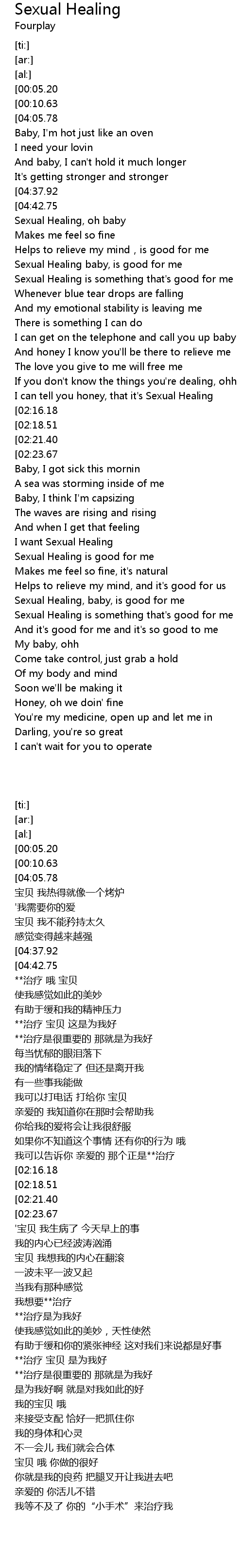 | [01:21.20] | Sexual Healing baby, is good for me |