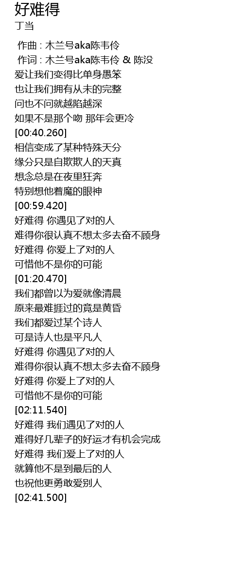 | [01:52.210] | 好难得 你遇见了对的人 |