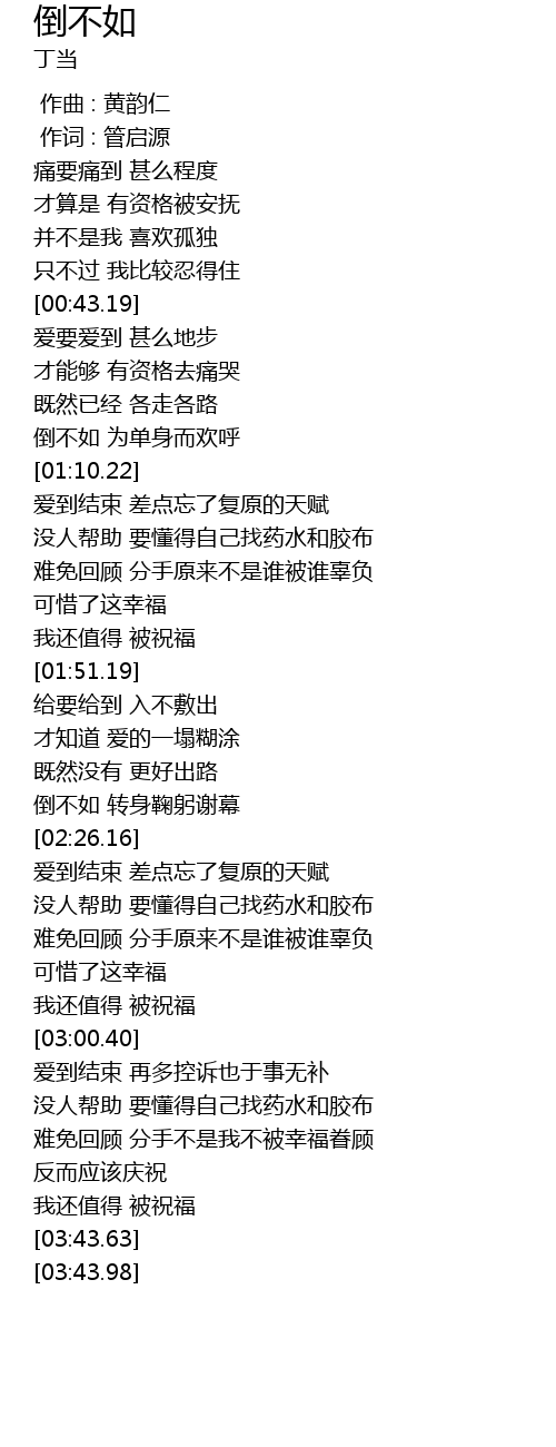 | [02:40.58] | 难免回顾 分手原来不是谁被谁辜负 |