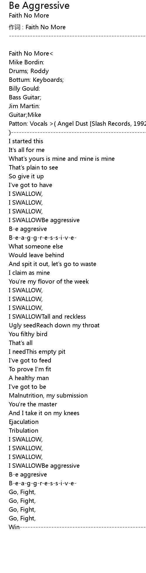 | 作词 : Faith No More | |