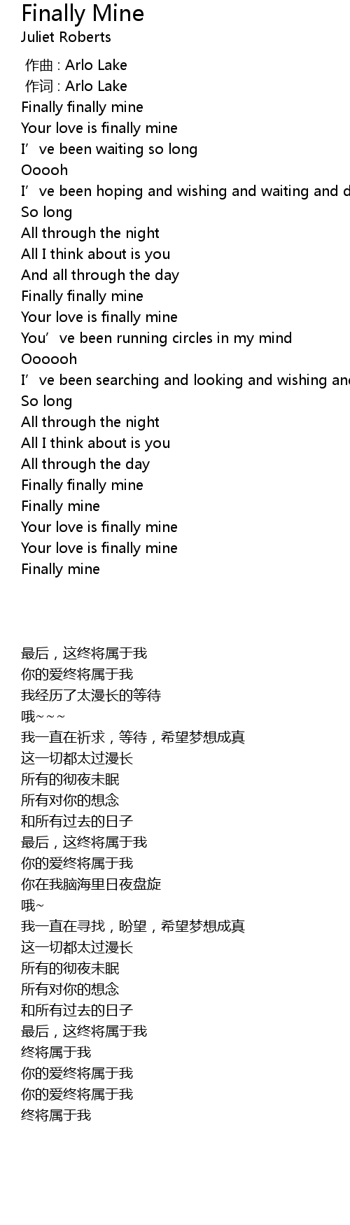 | [00:30.97] | I' ve been hoping and wishing and waiting and dreaming |