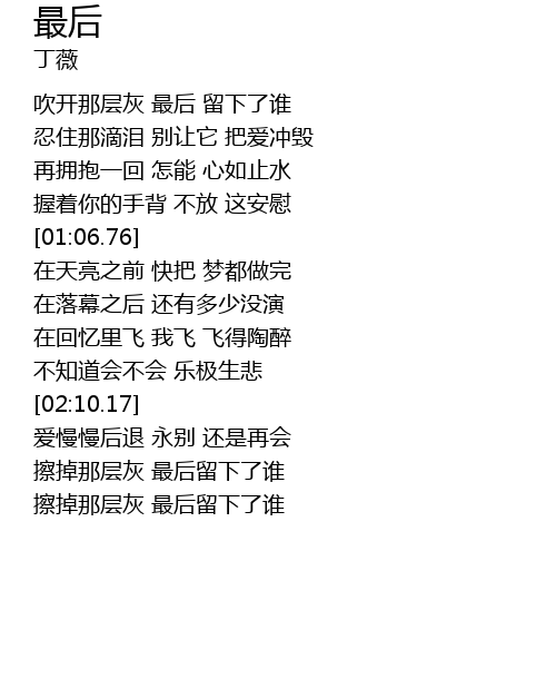 | [00:06.00] | 吹开那层灰 最后 留下了谁 |