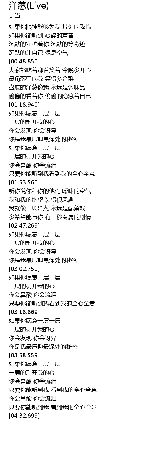 | [02:34.799] | 我就像一颗洋葱 永远是配角戏 |