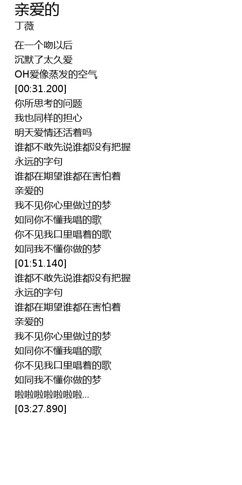 | [02:33.550] | 亲爱的 |