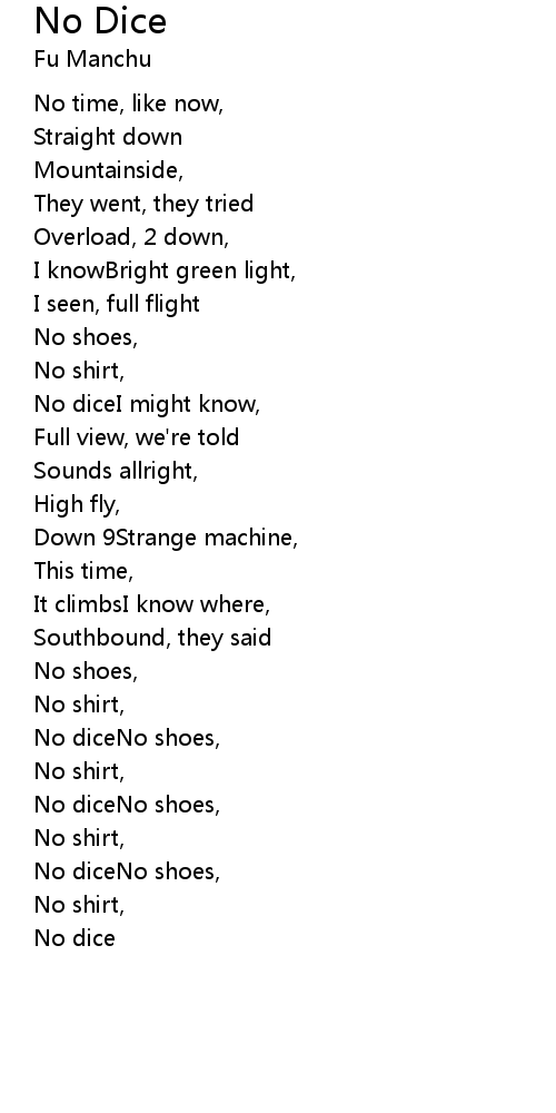| No diceNo shoes, | |