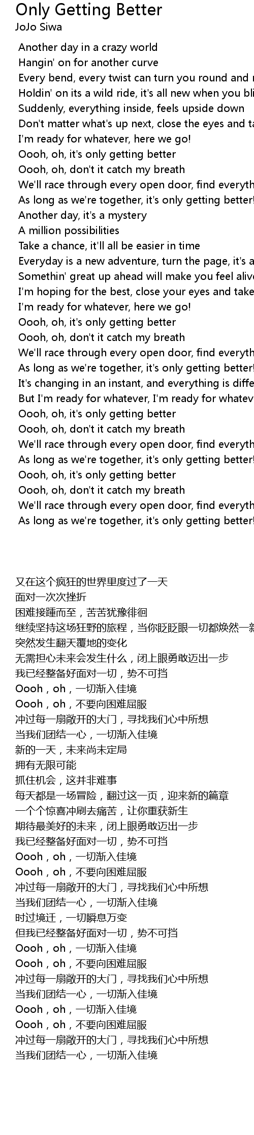 Oooh, oh, it's only getting better |