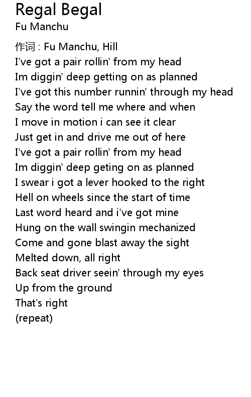 | 作词 : Fu Manchu, Hill | |