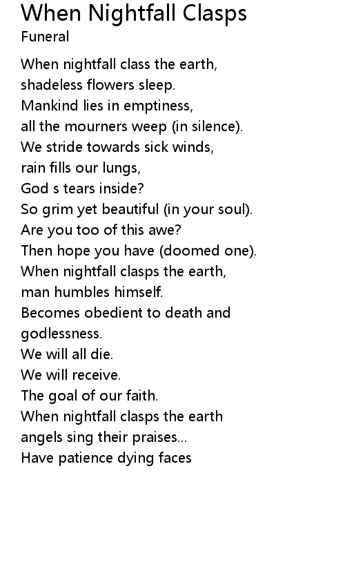 When Nightfall Clasps Lyrics