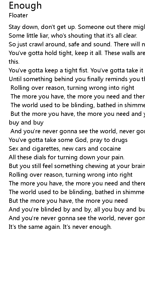 | But the more you have, the more you need and you're blinded by and by, all you buy and buy | |