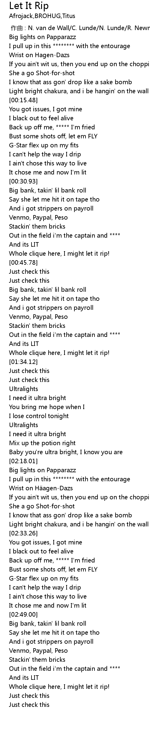 | [02:27.72] | I know that ass gon' drop like a sake bomb |
