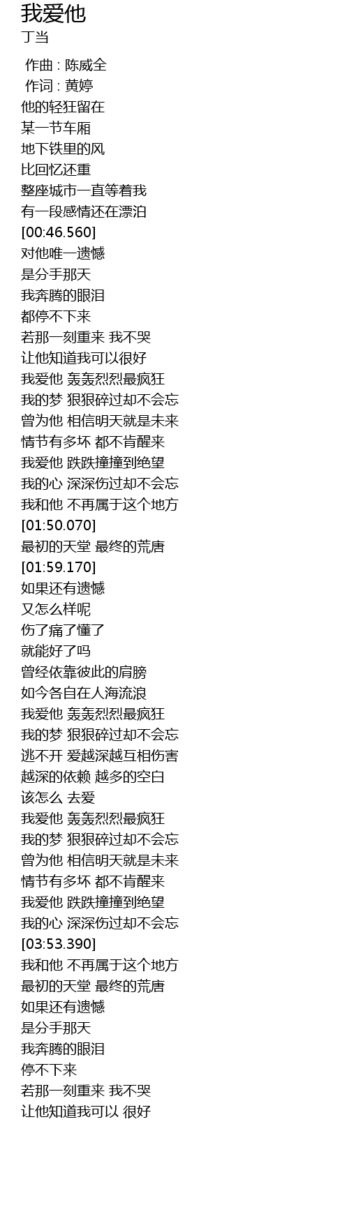 | [03:42.200] | 我爱他 跌跌撞撞到绝望 |