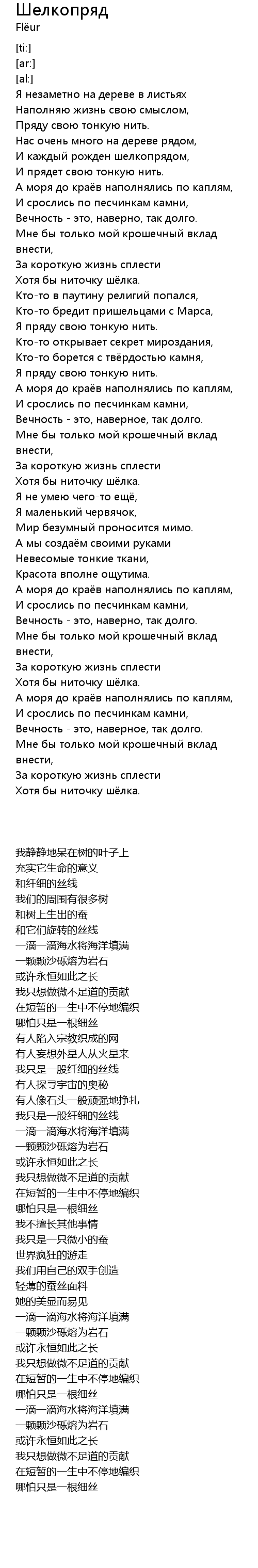 Я пряду свою тонкую нить. |