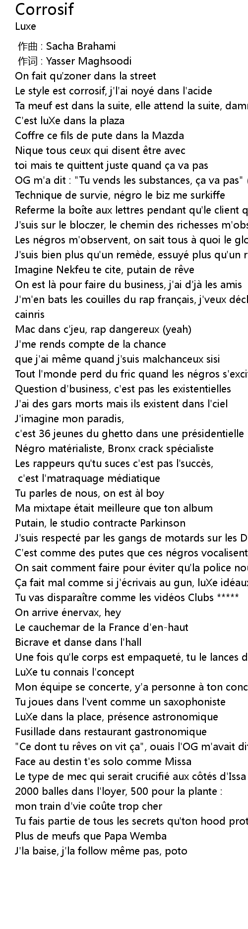 | [01:34.37] | C'est comme des putes que ces négros vocalisent |