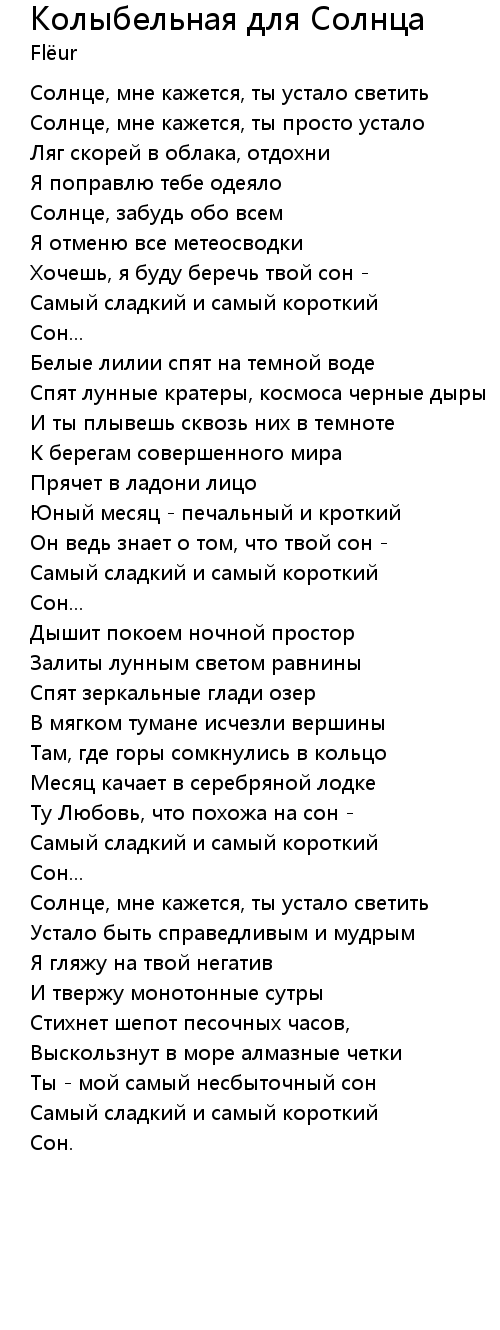 Колыбельная для Солнца  Lyrics