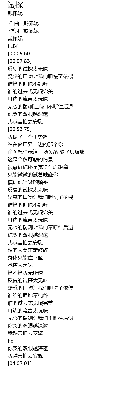 | [00:03.52] | 试探 |