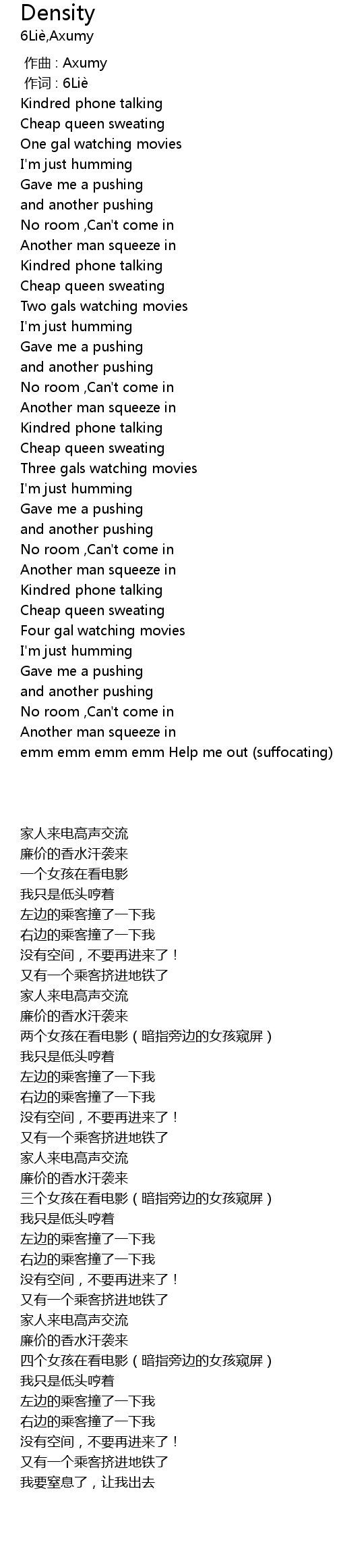 | [01:18.021] | emm emm emm emm Help me out suffocating |