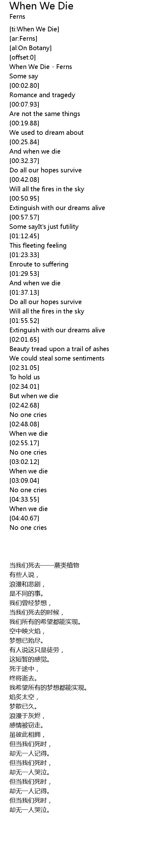 | [02:09.05] | Beauty tread upon a trail of ashes |